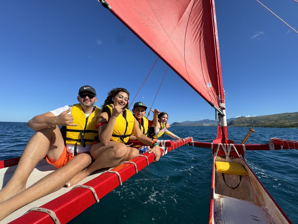 There are only two families allowed on the canoe, one on each side. The canoeist were amazing, they gave us so much information about the area, the ocean, the mountains surrounding the hotel, etc T